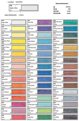 Pastele twarde Gioconda wykonane są z najwyższej jakości surowców. Zawierają dużą ilość równomiernie rozprowadzonego pigmentu, co zapewnia intensywność i trwałość barw. Doskonale nadają się do szkicowania i mocnego rysunku, a także wypełniania dużych obszarów. Rysunki wykonane tymi pastelami są bardziej trwałe niż wykonane pastelami suchymi. Pastele twarde idealnie przylegają do podłoża i nie rozcierają się. - Pastele twarde Gioconda - Zestaw zawiera 36 kolorów w kartonowym opakowaniu - Pastele twarde zalecane są do szkicowania i mocnego rysunku - Kwadratowa forma sztyftu umożliwia rysowanie każdą z krawędzi oraz wypełnianie dużych obszarów najdłuższym bokiem sztyftu - Pastele idealnie przylegają do podłoża, nie pylą się