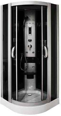 Kabina prysznicowa hydromasaż 100x100 cm. Kabina zabudowana szkło hartowane tylnie ściany czarne. Kabina prysznicowa Mazur Spa model MO-06089C. Kabina prysznicowa z oświetleniem Led, model narożny 100x100 na niskim brodziku.