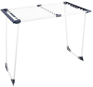 suszarka stojąca do ubrań space ii metrox. suszarka metalowa, malowana proszkowo, zabezpieczona przed rdzą suszarka rozsuwana – w wersji złożonej zajmuje min. ilość miejsca, wygodna w przechowaniu. wymiary suszarki rozłożonej: dł. 200 cm x szer. 55 cm x wys. 90 cm wymiary suszarki złożonej: dł. 113 cm x szer. 55 cm x gł. 6 cm długość linek – 20m max. obciążenia – 20 kg waga: 4,1 kg kolor elementów plastikowych – szary kolor elementów metalowych - biały suszarka wyposażona w osłonki zapobiegające rysowaniu podłogi oraz w kółka ułatwiające przemieszczanie suszarka wyposażona w wieszaki na bieliznę i skarpetki