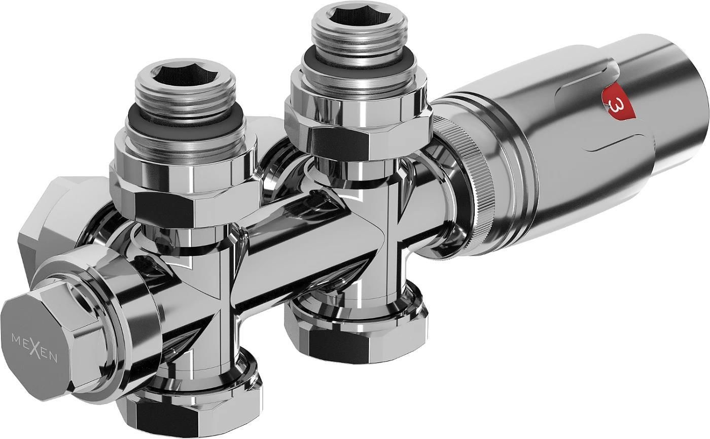 Mexen G00 zestaw termostatyczny kątowy/prosty, Duplex, DN50, chrom Producent: Mexen Seria: G00 Kod produktu: W907-900-01 Dane techniczne: Materiał zaworu: Mosiądz Kolor zaworu: Chrom Średnica przyłącza zaworu: G 1/2" Temperatura pracy: max 120 °C Maksymalne ciśnienie robocze: 10 bar Podłączenie dolne o rozstawie 50 mm Gwint głowicy: M30 x 1,5 mm Kolor głowicy: Chrom Skala regulacji: 0-5 Zakres regulacji temperatury: 0-29 °C Temperatura otoczenia: max 50 °C Zabezpieczenie przed zamarznięciem 5°C Możliwość podłączenia głowicy z lewej lub prawej strony zaworu W komplecie dodatkowe złączki do rur wielowarstwowych 16x2 mm oraz złączki do rur miedzianych 15 mm Uniwersalny zawór zasilający i odcinający do podłączeń kątowych i prostych, niezależnie od tego czy podłączenie jest w ścianie czy w podłodze