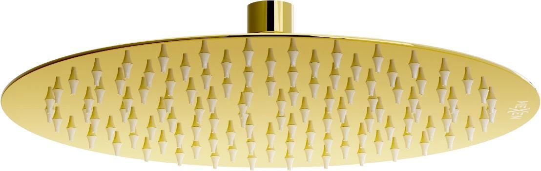 Mexen deszczownica slim okrągła 25 cm, złota Producent: Mexen Numer katalogowy: 79225-50 Dane techniczne Materiał: Stal nierdzewna S304 Wykończenie: Złoty Wymiary: 25 cm Standardowe przyłącze 1/2" Grubość: 2 mm Powierzchnia tarczy jest odporna na matowienie i korozję Deszczownica posiada gumowe dysze, które zapobiegają osadzaniu się kamienia
