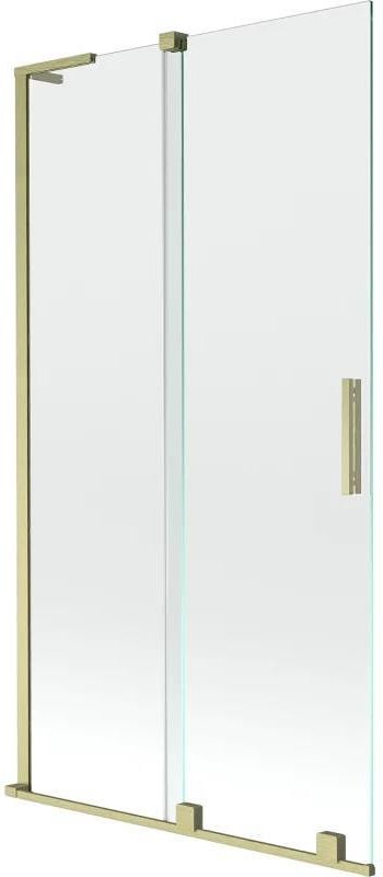 Dane techniczne: Szerokość: 100 cm Wysokość: 150 cm Rodzaj 2-skrzydłowy Montaż: Uniwersalny Typ: Ruchomy/Rozsuwany Rodzaj szkła: Hartowane Kolor szkła: Transparentny Grubość szkła: 8 mm Wykończenie: Złoty szczotkowany Stabilizator kątowy L Powłoka ułatwiająca czyszczenie Niwelacja nierówności ściany Komplet uszczelek odprowadzających wodę