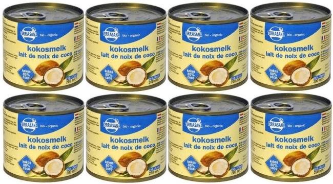 Uzyskiwane jest poprzez wyciskanie z dojrzałego miąższu kokosów. Charakteryzuje się delikatną konsystencją oraz głębokim aromatem. Mleko kokosowe bogate jest w łatwoprzyswajalne kwasy tłuszczowe, m.in. kwas laurynowy, występujący w mleku matki, pozytywnie wpływający na rozwój układu nerwowego oraz kostnego. Składniki: Woda, miąższ kokosowy*. * składniki pochodzące z upraw ekologicznych, objęte certyfikatem kontroli. Wartość odżywcza (w 100 g): Wartość energetyczna - 214 kcal (895 kJ) kJ / kcal tłuszcz - 22.00 g węglowodany - 2.00 g białko - 2.00 g Sposób spożycia: Ekologiczne mleko kokosowe stanowi doskonałe uzupełnienie w kuchni orientalnej, a w szczególności potraw z curry. Opakowanie: 200 ml x 8 sztuk
