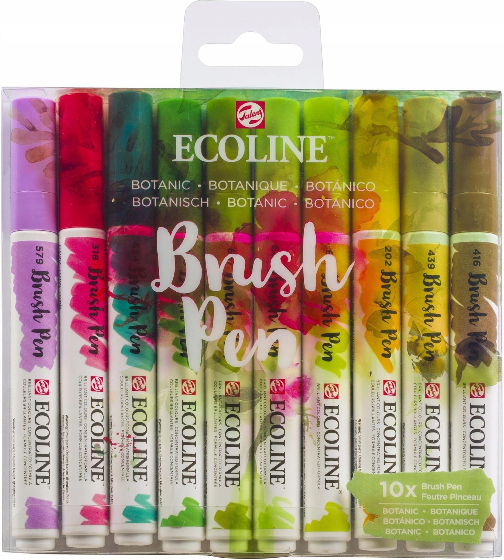 Pisaki pędzelkowe brush Ecoline - Talens - Botanic Zestaw pisaków akwarelowych wyposażonych w miękką, pędzelkową końcówkę, umożliwiającą kreślenie linii o różnej grubości. Doskonale nadają się do tworzenia obrazów, ilustracji, a także do kaligrafii i innych technik dekoracyjnych. Brush Peny …