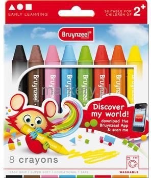Bruynzeel Crayons kredki dla najmłodszych użytkowników (od 2 roku życia) polecany szczególnie dla przedszkolaków ze względu na doskonałą jakość i funkcjonalność; produkt jest przebadany jest dermatologicznie; kredki są nietoksyczne, super zmywalne z rąk i ubrań za pomocą wody, bez użycia detergentów; wielkość kredki 85 x 15 mm; kredki są krótkie i grube co sprawia, że są idealnie przystosowane do rączek małych dzieci posiadają miękki grafit i wyraźne barwy zestaw zawiera 8 kolorów: czarny brązowy różowy, niebieski zielony czerwony pomarańczowy żólty opakowanie: estetyczne pudełko tekturowe, w które wsunięta została plastikowa paletka produkt firmy Bruynzeel-SakuraRok 1898 to początek powstania holenderskiej firmy Bruynzeel. Od początku istnienia głównym profilem firmy było przetwórstwo drewna.Roku 1948 stał się przełomowym w funkcjonowaniu firmy. Uruchomiona została produkcja ołówków w drewnianej obudowie.W roku 1997 Bruynzeel stał się członkiem grupy Sakura. Ta japońska firma powstała w roku 1921 początkowo pod nazwą Nihon Crayon Corporation, aby w roku 1970 zmienić nazwę na Sakura Color Products Corporation. Od początku swej działalności Sakura wprowadziła szereg innowacyjnych produktów takich jak olejowe pastele Cray Pas (1925 r.), przemysłowy marker Solid Marker (1964 r.), pisak Pigma Ink (1981 r.) oraz roller żelowy Gelly Roll (1987 r.). W roku 1991 Sakura stała się właścicielem znanego holenderskiego producenta artykułów dla artystów – firmy Royal Talens.Natomiast od roku 2001 firma pod nazwą Bruynzeel – Sakura BV ma w swej ofercie produkty do szkoły i biura, dla plastyków oraz do użytku przemysłowego.