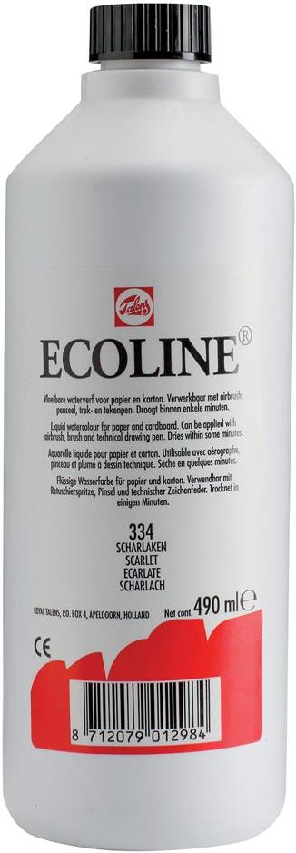 Talens Ecoline farba akwarel płyn 490ml 334 scarle Talens Ecoline skoncentrowana farba akwarelowa w stanie płynnym odznacza się wspaniałą przyswajalnością do papieru akwarelowego, rysunkowego lub tektury Ecoline to wszechstronność w użyciu w połączeniu z różnego rodzaju materiałami; doskonale …