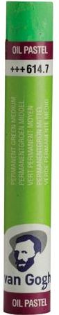 Pastela olejna Van Gogh Talens 614.7 Perm.Green M Pastele olejne Van Gogh wykonane są z najwyższej jakości pigmentów, olejów mineralnych i spoiwa woskowego co pozwala na miękkie, gładkie i bezpyłowe rysowanie przy zachowaniu intensywnych kolorów. Pastele z tej serii łatwo łączą się ze sobą umożliwiając nakładanie na siebie kolejnych warstw. Dla uzyskania efektu farb olejnych, pastele można używać na mokro z terpentyną lub roztworem mineralnym. Nadają się na podłoża różnego rodzaju. Cała gama składa się z 60 kolorów dostępnych również w zestawie.