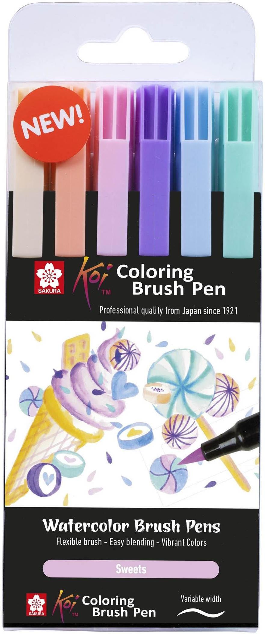 Zestaw pisaków pędzelkowych Koi Sakura - Sweets Wyjątkowy zestaw pisaków pędzelkowych Sakura Koi Brush Pen. Flamastry łączą komfort pracy typowy dla markerów z możliwościami tradycyjnego pędzla. Posiadają filcową, pędzelkową końcówkę pozwalającą uzyskać linie o zróżnicowanej grubości. Ich tusz na …