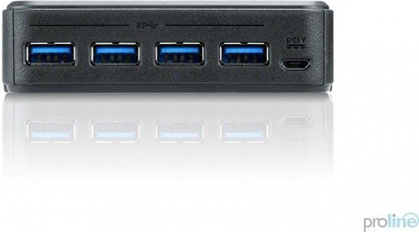 Przełącznik KVM Aten US434 Czarny – Efektywne Zarządzanie Dwoma Komputerami Aten US434 to nowoczesny przełącznik KVM, który umożliwia wygodne sterowanie dwoma komputerami za pomocą jednego zestawu peryferii – klawiatury, myszy i monitora. Idealny do domowego biura, pracy zdalnej lub profesjonalnych zastosowań w IT. Kompaktowy, niezawodny i łatwy w obsłudze – to rozwiązanie, które zwiększy Twoją produktywność! Najważniejsze cechy produktu Obsługa 2 komputerów: Płynne przełączanie między urządzeniami za pomocą przycisku lub pilota. Porty USB 3.0: Szybki transfer danych (do 5 Gbps) i kompatybilność z urządzeniami USB. Wysoka jakość wykonania: Wytrzymała, czarna obudowa z plastiku o wymiarach 93 x 93,7 x 26,8 mm. Długie kable: Kabel o długości 1,8 m zapewnia elastyczność w aranżacji stanowiska pracy. Prosta instalacja: Plug-and-play, bez potrzeby instalowania dodatkowego oprogramowania. Uniwersalna kompatybilność: Działa z systemami Windows, Linux i macOS. Diody LED: Wskazują aktywny komputer, ułatwiając obsługę. Dlaczego warto wybrać Aten US434? Przełącznik KVM Aten US434 to idealne rozwiązanie dla osób, które chcą zoptymalizować swoje miejsce pracy. Zamiast dwóch zestawów klawiatury i myszy, używasz jednego, oszczędzając przestrzeń i czas. Szybkie przełączanie między komputerami sprawia, że praca staje się bardziej płynna, a porty USB 3.0 pozwalają na podłączenie dodatkowych urządzeń, takich jak drukarki czy dyski zewnętrzne. Zastosowanie Praca zdalna: Łatwe zarządzanie komputerem służbowym i osobistym. Domowe biuro: Minimalizacja bałaganu na biurku. IT i administracja: Sprawne zarządzanie wieloma urządzeniami w środowisku profesjonalnym. Specyfikacja techniczna Rodzaj portów: USB-A (klawiatura/mysz), USB-B (konsola). Liczba komputerów: 2. Długość kabla: 1,8 m. Kolor: Czarny. Materiał: Plastik. Wymiary: 93 x 93,7 x 26,8 mm. Co zyskujesz? Wygodę: Jeden zestaw peryferii do obsługi dwóch komputerów. Oszczędność miejsca: Kompaktowy design i brak zbędnych kabli. Niezawodność: Marka Aten to synonim jakości w branży KVM. Szczegóły Techniczne Certyfikat środowiskowy (zrównoważonego rozwoju): RoHS Waga i rozmiary Głębokość opakowania: 163 mm Szerokość produktu: 36,6 mm Waga wraz z opakowaniem: 576 g Głębokość produktu: 93,7 mm Waga produktu: 439 g Wysokość produktu: 26,8 mm Warunki pracy Zakres wilgotności względnej: 0 - 80% Zakres temperatur (eksploatacja): 0 - 40 °C Zakres temperatur (przechowywanie): -20 - 60 °C Wydajność Funkcja pilota: Tak Złącze zasilania: Micro-USB Typu-B Diody LED: Tak Maksymalna szybkość przesyłania danych: 5 Gbit/s Materiał obudowy: Plastik Kolor produktu: Czarny Porty i interfejsy USB 3.2 Gen 1 (3.1 Gen 1) Ilość portów typu B: 4 Gniazdko wyjścia DC: Tak Ilość portów USB 3.2 Gen 1 (3.1 Gen 1) Typu-A: 4 K4