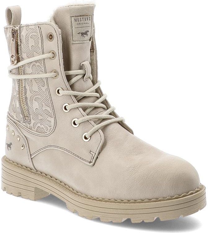 Beżowe Trzewiki Mustang Ocieplane Obuwie Damskie