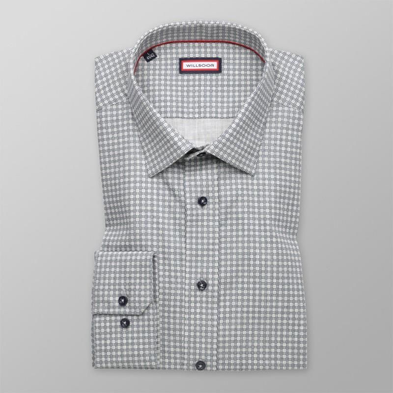 Biała taliowana koszula w granatową kratkę z klasycznym kołnierzykiem KENT
