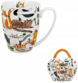Klasyczny kubek z serii Koci świat- Leniwe koty wchodzący w skład linii Animals. Pojemność całkowita kubka 350 ml (pojemność liczona po rant kubka). Wykonany jest z porcelany New Bone, charakteryzującej się elegancką i naturalną kremowo - białą barwą z delikatnym połyskiem, a także wyjątkową wytrzymałością przy zachowaniu lekkości i delikatności. Doskonały do przyrządzania ulubionej kawy i aromatycznej herbaty. Kolekcja zdobiona motywem domowych kotów w trakcie typowych codziennych zajęć. Całość utrzymana w filuternym klimacie oraz klasycznej kolorystyce. Kubek wygodny w użytkowaniu i prosty w utrzymaniu czystości. Można go swobodnie myć w zmywarce oraz używać w kuchence mikrofalowej, co ułatwi codzienne użytkowanie i zaoszczędzi nasz cenny czas. Całość zapakowana w oryginalne opakowanie z uchwytem z tym samym motywem to doskonały pomysł na niebanalny prezent urodzinowy zarówno dla kobiety i mężczyzny, a także podarunek dla szefa czy nauczyciela, również jako podziękowanie. Wzór: Koci świat- Leniwe koty Produkt 1 x kubek 1 x obwoluta Wymiary Średnica: 8,2 cm Wysokość: 10,5 cm Pojemność całkowita: 350 ml Pojemność użytkowa około 320 ml Materiał porcelana Użytkowanie dopuszczone do kontaktu z żywnością zmywarka mikrofala