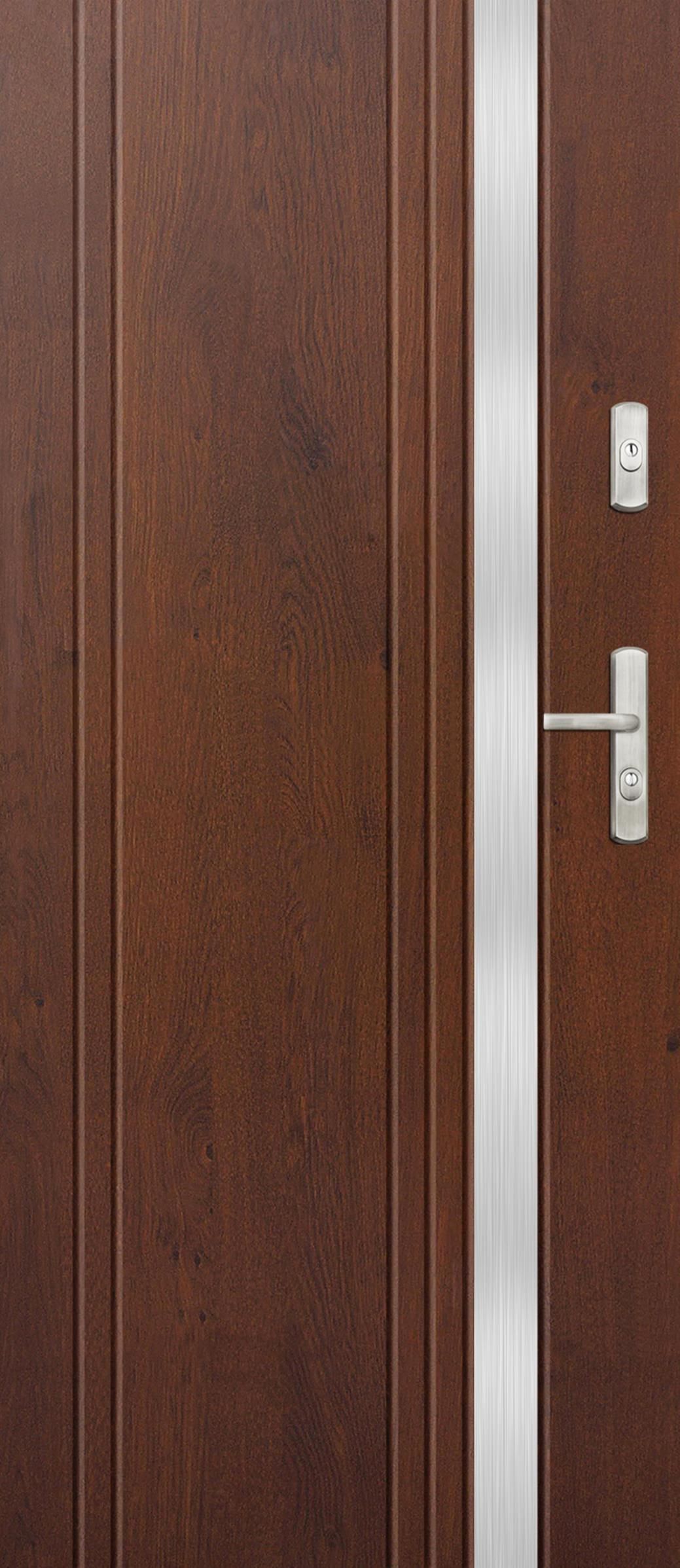 DRZWI WEJŚCIOWE KMT Stal KMT Plus 75 Aplikacja 15-1+ościeżnica Opis produktu: Drzwi przeznaczone do stosowania w budownictwie wielorodzinnym oraz jednorodzinnym. Solidna budowa oraz bardzo dobre parametry techniczne gwarantują zadowolenie z użytkowania. Kierunek otwierania drzwi: Konstrukcja skrzydła: skrzydło przylgowe grubość skrzydła - 75 mm materiał - blacha stalowa ocynkowana, pokryta laminatem drewnopodobnym wypełnienie skrzydła - pianka poliuretanowa bezfreonowa Wyposażenie: ościeżnica TERMA (ciepła) próg TERMA zamek podstawowy wielopunktowy zamek dodatkowy klasy 4 zawiasy 3D z osłonką 3 szt. bolce antywyważeniowe 6 szt. aplikacja jednostronna regulacja zamka Kolorystyka: Odstąpienie od umowy przez Klienta nie jest możliwe w przypadku zakupu towarów o właściwościach określonych przez Klienta w złożonym przez niego zamówieniu. Produkcja zamówionych skrzydeł drzwiowych i ościeżnic rozpoczyna się w momencie zaksięgowania zaliczki, na specjalne zamówienie Klienta i dostosowanych do jego indywidualnych potrzeb o właściwościach określonych przez Klienta. PRZY WPŁACIE NA KONTO PRZESYŁKA KURIERSKA NIEZALEŻNIE OD ILOŚCI ZAMÓWIONYCH DRZWI WYNOSI 189 ZŁOTYCH