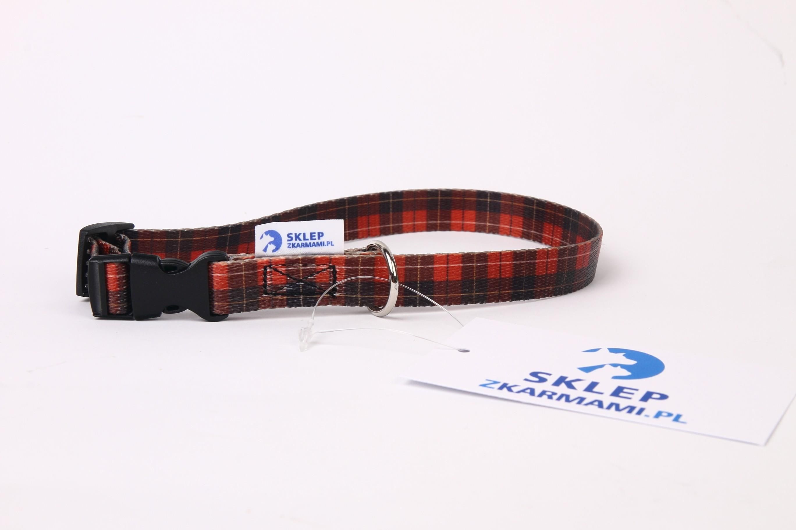 Obroża z plastikową klamrą taśma wzór Szkocka krata : rozmiar - 15mm DOSTAWA 24h GRATIS od 99zł Skoczów
