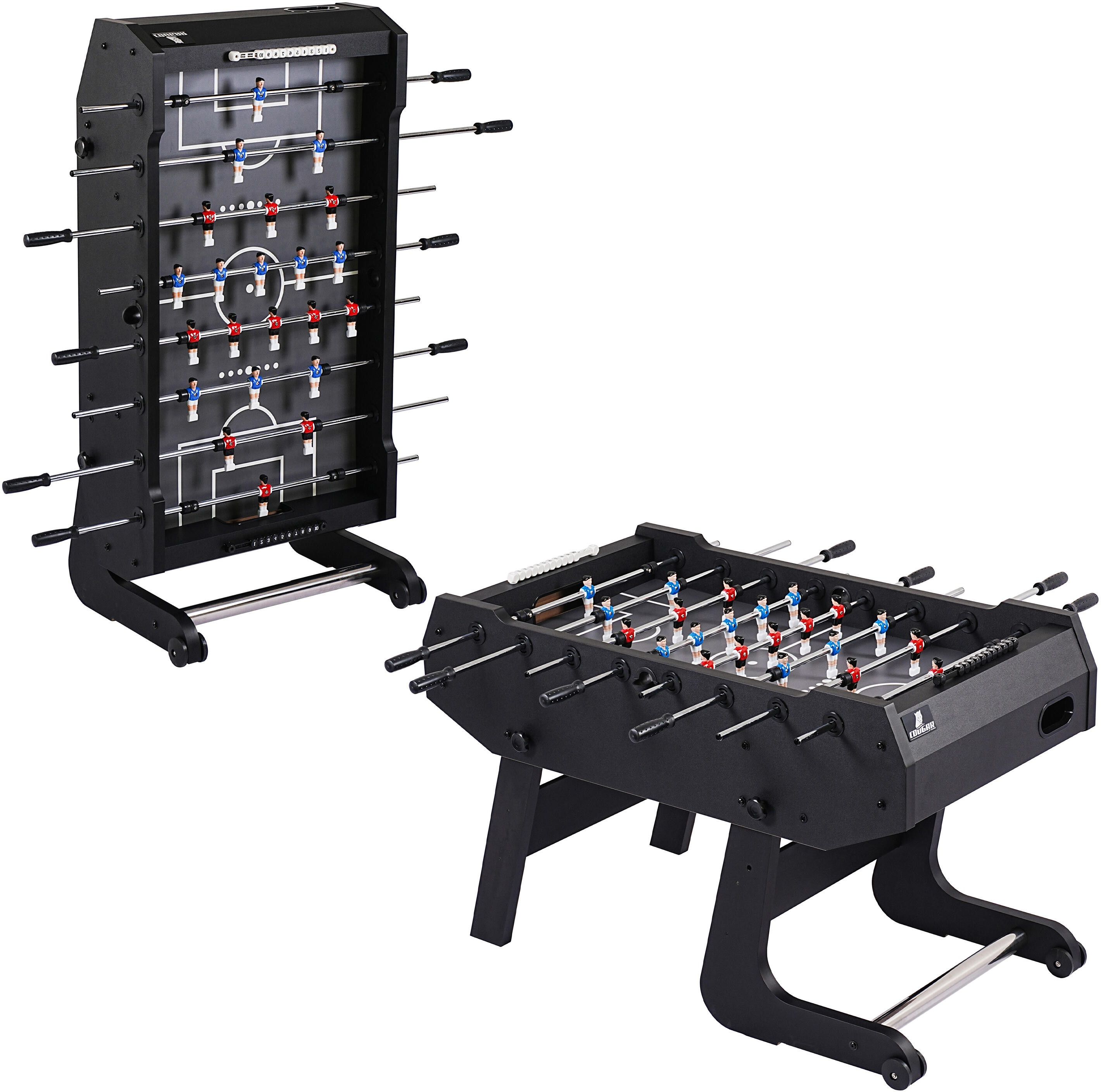 Stol do pilkarzykow Skladany – 4 pilki i 2 liczniki punktow Marka:Cougar Opis produktu Sk?adany stó? do pi?karzyków Powerkick Pro 139 x 74 x 88 cm – szalone rozgrywki z rodzin?! Inteligentny system sk?adania, wzmocnione stalowe dr??ki, 4 pi?ki w zestawie, 2–4 graczy. Cechy kluczowe Sporty precyzyjne Piłkarzyki Specyfikacja Przeznaczenie:Stół do piłkarzyków Rozmiar: