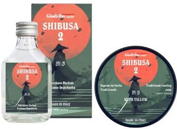 Zestaw DUOPACK 2 Produkty Oryginalnej Włoskiej Marki GOODFELLAS SMILEZestaw SHIBUSA 2 1. Płyn po Goleniu Shibusa 2 od The Goodfellas Smile 100ml Całkowicie zmieniona formuła i zapach (od grudnia 2019 r.) Ta silnie skoncentrowana woda po goleniu została celowo zainspirowana Acqua di Parma z mocną nutą migdałów (bez aldehydu benzoesowego) nutami serca anyżu, brzoskwini i ylang ylang spoczywających na delikatnych nutach wanilii i białego piżmu. Rezultatem jest woda po goleniu o słodkim i lekko kłującym zapachu.Sposób użycia:Wstrząśnij przed użyciem. Wmasuj lub Rozpryskaj na twarz za pomocą dowolnego spryskiwacza do wód po goleniu). 100% Made in Italy Składniki:Alcohol Denat., Aqua (Water), Parfum (Fragrance), Polysorbate 20, Peg-40 Hydrogenated Castor Oil, Menthol, Dimethicone Copolyol, Tetrasodium Edta. Wielkość opakowania: 100ml 2. Tradycyjne Mydło do Golenia dla Koneserów na bazie Tallow (łoju naturalnego) 100ml od Goodfellas Smile Całkowicie zmieniony pod względem formuły i zapachu (od grudnia 2019 r.) to mydło ​​do golenia jest celowo inspirowany zapachem Acqua di Parma z mocną nutą migdałów (wolnym od aldehydu benzoesowego) oraz ut zapachów serca anyżu, brzoskwini i ylang ylang spoczywających na delikatnych nutach wanilii i białego piżmu. Rezultatem jest mydło o słodkim i lekko ostrym zapachu. Mydło do golenia Shibusa 2 dołącza do wyboru mydeł do golenia The Goodfellas wykonanych z Tallow (a zatem łoju pochodzenia zwierzęcego - tradycyjne mydła). Składniki:Aqua (Water), Stearic Acid, Coconut Oil, Tallow, Potassium Hydroxide, Parfum (Fragrance), Sodium Hydroxide. Opakowanie BIODEGRADOWALNE Innowacyjne opakowanie Goodfellas wykonane z odnawialnego źródła roślinnego - trzciny cukrowej, ale nie będą ostatnie. Każdy słoik biopolimerowy będzie rozpoznawalny dzięki etykiecie „I Am Green” na boku słoika. Mydła do golenia w nowych biosłoiczkach są zamknięte wewnątrz specjalnym papierem chroniącym przed świeżością, który zagwarantuje konsumentowi niezmieniony produkt do momentu jego otwarcia.