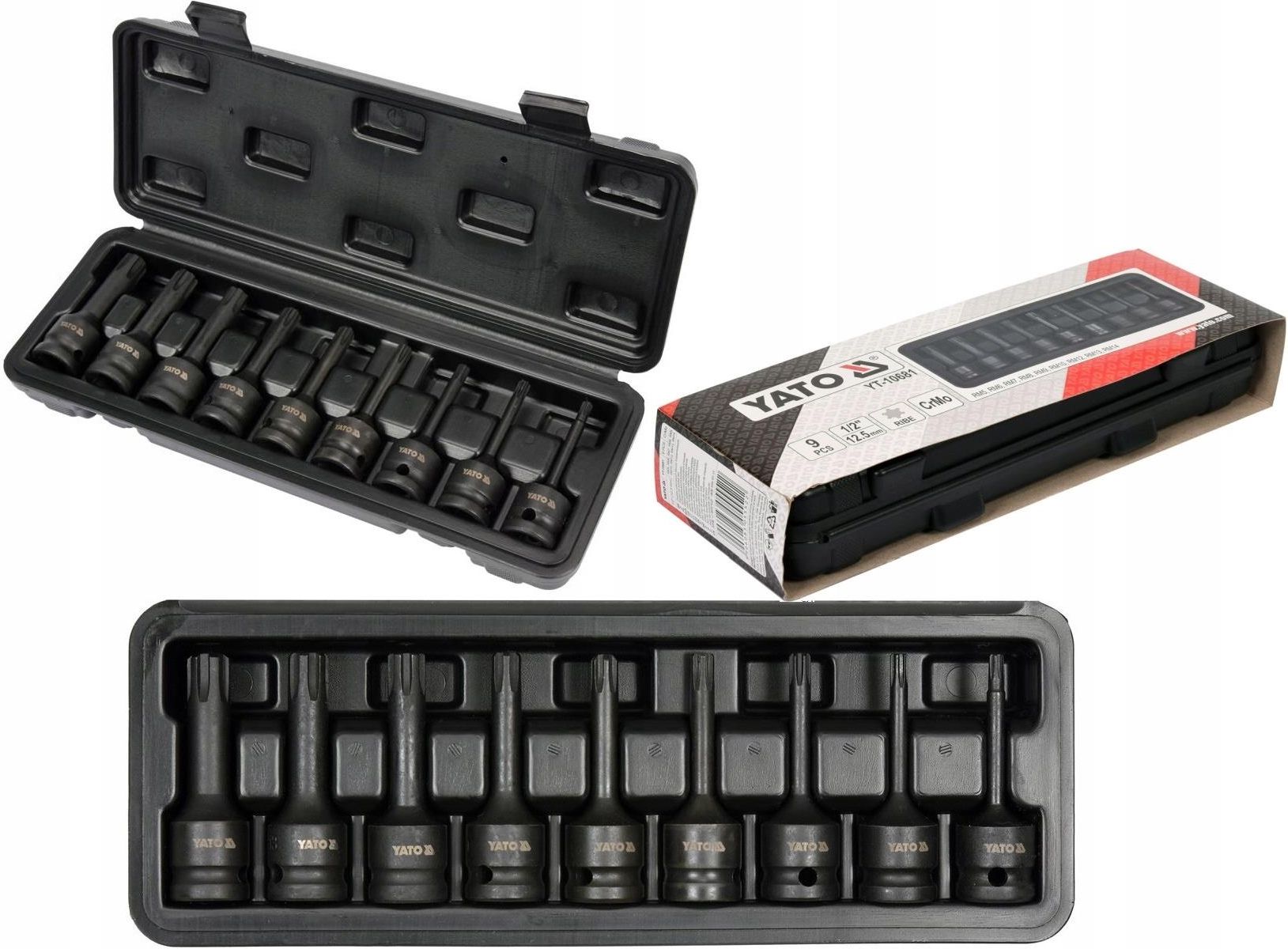 Yato YT-10681 Przedstawiamy 9-częściowy zestaw udarowych kluczy trzpieniowych Ribe, idealny dla profesjonalnych serwisów samochodowych oraz mechanicznych. Ten niezawodny zestaw narzędzi marki Yato to doskonała inwestycja dla każdego, kto poszukuje trwałych i wytrzymałych kluczy, które poradzą sobie z najtrudniejszymi zadaniami. Trwałość i wytrzymałość Klucze, wchodzące w skład zestawu, zostały wykonane z wysokiej jakości stali CrMo (chromowo-molibdenowej), która słynie ze swojej odporności na uderzenia i długowieczności. Takie wykonanie gwarantuje, że narzędzia będą Ci służyć przez wiele lat, nawet przy intensywnym użytkowaniu. Szeroki zakres rozmiarów Zestaw udarowych kluczy trzpieniowych obejmuje szeroki zakres rozmiarów: RM5, RM6, RM7, RM8, RM9, RM10, RM12, RM13, RM14. Dzięki temu narzędzia te są niezwykle wszechstronne i mogą być stosowane w różnych sytuacjach, co czyni je niezbędnym elementem wyposażenia każdego warsztatu. Funkcjonalność i wygoda użytkowania Zestaw został zaprojektowany do współpracy z kluczami udarowymi, co dodatkowo zwiększa jego funkcjonalność. Każdy klucz posiada otwór stabilizujący mocowanie, co zapewnia bezpieczne i pewne przyleganie do narzędzia napędowego. Napęd o rozmiarze 1/2" sprawia, że zestaw jest kompatybilny z wieloma popularnymi narzędziami dostępnymi na rynku. Zawartość zestawu W skład zestawu wchodzi: 9 udarowych kluczy trzpieniowych Ribe, walizka do przechowywania narzędzi, otwory stabilizujące mocowanie, napęd 1/2". Zestaw jest zapakowany w poręczną walizkę, co ułatwia przechowywanie i transport narzędzi.
