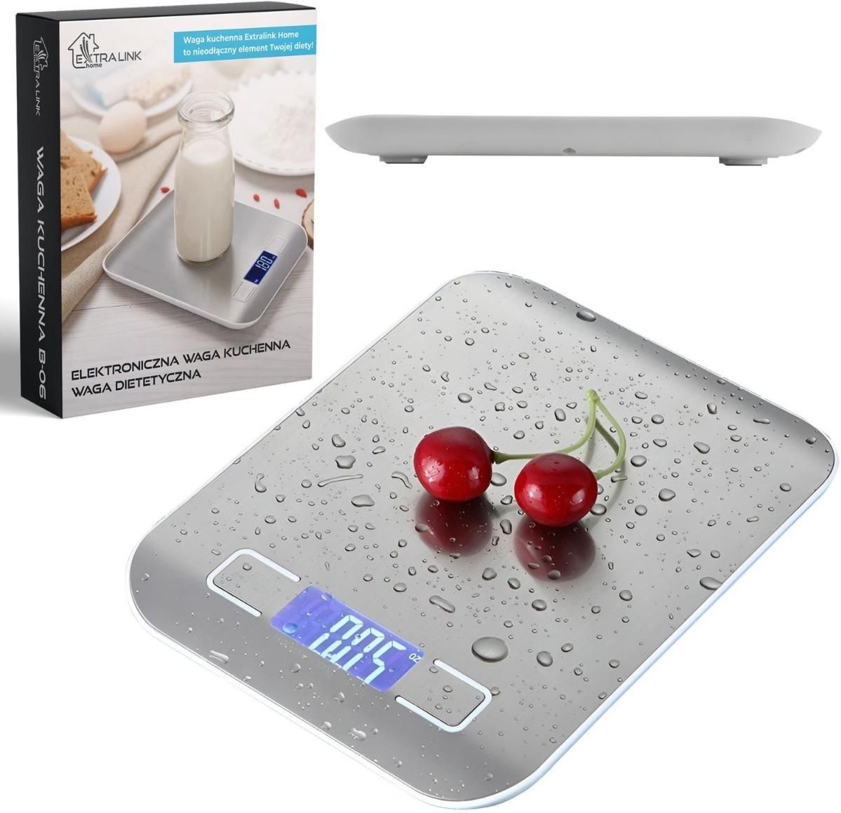 Precyzyjna waga elektroniczna z 6 jednostkami pomiaru Waga kuchenna B-06 oferuje możliwość wyboru spośród 6 różnych jednostek pomiaru, co pozwala na elastyczność w kuchni. Możliwe jednostki pomiaru to: Kilogramy (kg) Gramy (g) Uncje (oz) Funty (lb) Mililitry (ml) Mililitry dla mleka (milk ml) Elektroniczny wyświetlacz Wyraźny, elektroniczny wyświetlacz ułatwia odczyt wyników pomiarów, zapewniając precyzję nawet przy najmniejszych składnikach. Automatyczne zerowanie i wyłączanie Funkcja automatycznego zerowania po każdym pomiarze pozwala na szybkie przygotowanie kolejnych składników, a automatyczne wyłączanie oszczędza baterię i przedłuża żywotność urządzenia. Wskaźnik niskiego poziomu baterii i przeciążenia Wbudowany wskaźnik ostrzega przed niskim poziomem baterii, a także przeciążeniem wagi, zapewniając długotrwałe i bezpieczne użytkowanie. Funkcja tarowania – Precyzyjne ważenie składników Funkcja tarowania pozwala na ważenie wielu składników oddzielnie, bez konieczności usuwania wcześniej dodanych. Po każdym dodaniu nowego składnika waga może być wyzerowana, co zapewnia precyzyjne pomiary kolejnych porcji. Łatwe czyszczenie Platforma wykonana z gładkiej stali nierdzewnej jest łatwa do utrzymania w czystości. Wystarczy szybkie przetarcie, aby waga była gotowa do ponownego użycia. Wielofunkcyjne urządzenie Waga kuchenna B-06 to wielofunkcyjne narzędzie, które sprawdzi się zarówno przy codziennym gotowaniu, jak i w bardziej zaawansowanych przepisach wymagających precyzyjnych pomiarów. Waga kuchenna B-06 to niezastąpiony pomocnik w każdej kuchni, łączący nowoczesny design, precyzję oraz wygodę użytkowania.