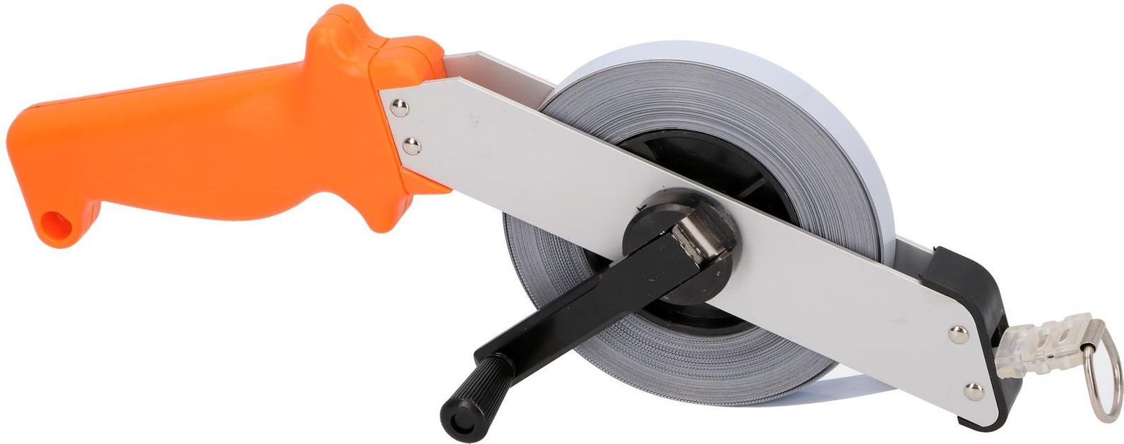 Profesjonalna taśma geodezyjna Taśma stalowa Obudowa otwarta Poręczny uchwyt Korba do zwijania taśmy Kolor: pomarańcowo-biały