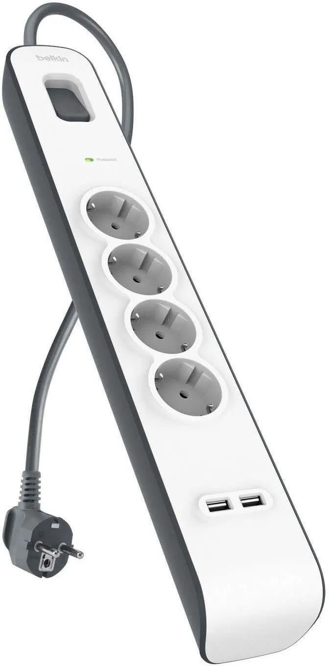 Belkin Listwa zasilająca przeciwprzepięciowa 525J, 4 gniazda Schuko, 2x USB-A, 2m (BSV401VF2M-V2) Belkin SurgePlus BSV401VF2M-V2 – niezawodna ochrona domowego biura Chroń elektronikę przed przepięciami i skokami napięcia za pomocą listwy zasilającej Belkin SurgePlus, wyposażonej w cztery gniazda …