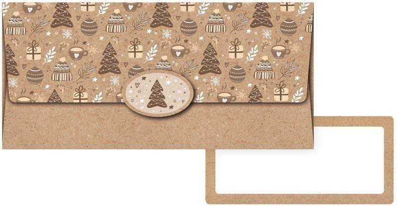 Koperta podarunkowa. Wewnątrz znajduje się ozdobna karteczka, na której można napisać życzenia. Każda koperta jest zapakowana osobno w folię z zawieszką euro. Oprawa: blister Format: 180x90 mm