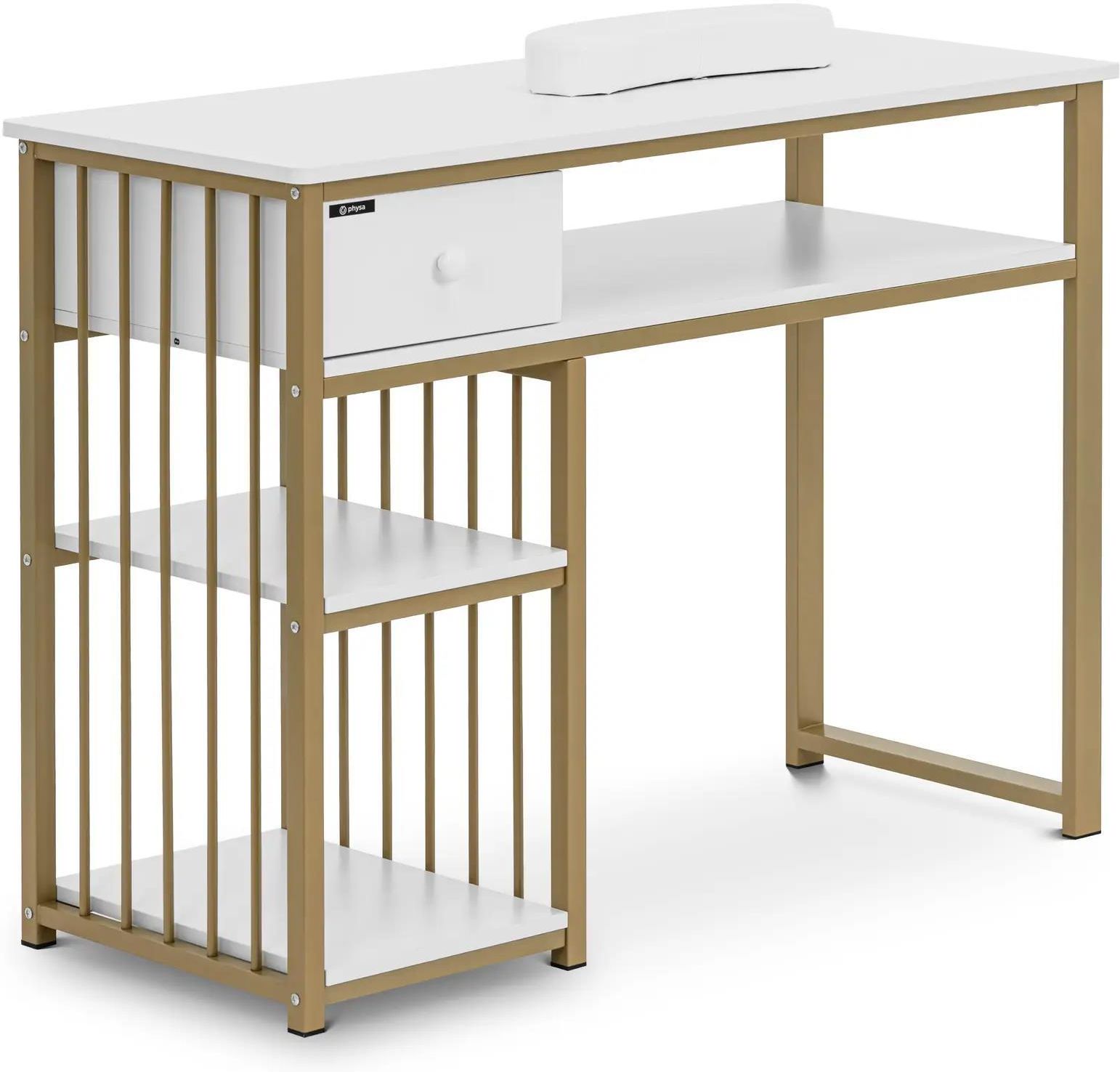 Biurko do manicure - żelazna rama - białe / złote - szuflada - podpórka pod dłonie - physa - PHY_MC10 Sława
