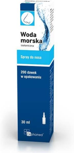 Przeznaczona dla dorosłych, dzieci i niemowląt powyżej 1 miesiąca życia. Nawilża wysuszoną śluzówkę nosa. Działa łagodząco w podrażnieniach śluzówki nosa, w stanach infekcji i alergii. Pomocniczo w czasie nieżytu nosa, zapalenia zatok oraz kataru siennego. Woda morska Cephamed 30 ml jest izotonicznym roztworem wody morskiej, nawilża suchą śluzówkę nosa, stosuje się ją pomocniczo w czasie nieżytu nosa, zapalenia zatok oraz kataru siennego, łagodząco w czasie podrażnienia śluzówki nosa w stanach infekcji i alergii oraz do codziennej higieny i oczyszczenia nosa. Produkt jest przeznaczony dla dorosłych, dzieci i niemowląt powyżej 1 miesiąca życia: do codziennej higieny nosa; do nawilżania wysuszonej śluzówki nosa; łagodząco w czasie podrażnienia śluzówki nosa w stanach infekcji i alergii. Przeciwwskazana i ostrzeżenia Nie stosować w przypadku nadwrażliwości (alergii) na którykolwiek ze składników wyrobu. Nie stosować preparatu w przypadku stwierdzenia nadwrażliwości na którykolwiek ze składników produktu. Nie stosować po upływie terminu przydatności do użycia. Każdy poważny incydent związany z wyrobem medycznym należy zgłosić producentowi i właściwemu organowi państwa członkowskiego, w którym użytkownik lub pacjent maja miejsce zamieszkania. Sposób użycia Delikatnie wprowadzić końcówkę aplikatora do nosa i nacisnąć podstawę aplikatora. Po każdym stosowaniu oczyścić końcówkę wodą z mydłem, a następnie opłukać i osuszyć. Niemowlęta powyżej 1. miesiąca życia i dzieci: 1 do 2 dawek sprayu do każdego otworu nosowego 2 do 3 razy dziennie. Dorośli: 1 do 3 dawek sprayu do każdego otworu nosowego 2 do 3 razy dziennie. Należy uważnie przeczytać instrukcje używania znajdującą się w opakowaniu, gdyż zawiera ona istotne informacje dla pacjenta o zastosowaniu „Cephamed woda morska izotoniczna 30 ml”, a następnie przechowywać ją, aby w razie konieczności móc powtórnie ja przeczytać. Składniki Woda morska, woda oczyszczona. PKWIU 32.5 Rodzaj EAN 5902276560323 BLOZ_07 9093358
