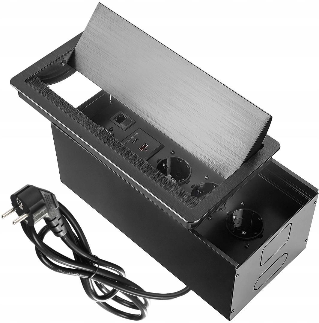 Spacetronik Potrójne gniazdo nablatowe z Usb otwierane HDMI/RJ45 czarne 1753693938 Sława