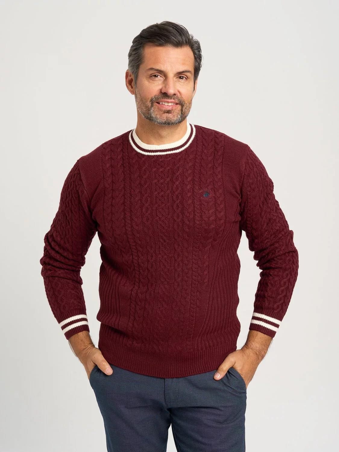 Sweter męski Beverly Hills Polo Club Kolor: bordowy w warkocze Dekolt: okrągły (typ O-neck) Skład: 70% akryl, 30% nylon Białe, kontrastowe paski przy szyi i na mankietach Rękawy wykończone ściągaczem Dół wykończony ściągaczem Elastyczna tkanina, prosty fason Klasyczny ścieg w warkocze Producent: Beverly Hills Polo Club Jakość: pierwsza Gwarancja: 24 m-ce