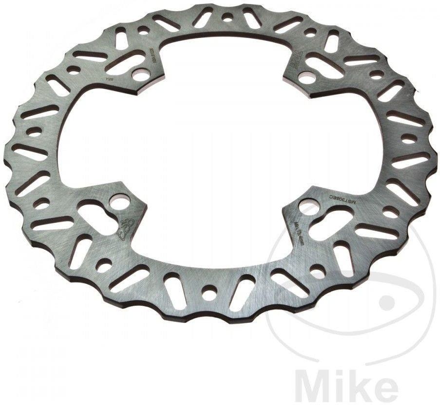 Tarcza hamulcowa tył TRW MST305EC Tarcza przeznaczona do motocykli klasy enduro/cross. Specjalnie hartowany stop stalowy wykazuje długą żywotność w każdych warunkach pogodowych. Tarcza przystosowana do współpracy ze wszystkimi typami klocków przeznaczonych zarówno do sportu amatorskiego jak i zawodowego. Wszystkie tarcze hamulcowe TRW, zarówno do skuterów jak i cięższych motocykli, posiadają odpowiednie świadectwo homologacji, uprawniające do użycia ich w ruchu po drogach publicznych. Tracze hamulcowe TRW wykonano z najwyższej jakości stali, która gwarantuje równomierne nagrzewanie się jej na całej powierzchni, co ułatwia szybką adaptację termiczną okładzin hamulcowych. Odpowiedni skład chemiczny zapobiega przedwczesnej korozji. Technologia laserowego wykrawania, pozwala na uzyskanie założonej dokładności jak i ciekawych kształtów tarcz. W jednym z ostatnich procesów technologicznych, tarcza TRW jest szlifowana do osiągnięcia projektowej grubości. Ten proces jest nadzorowany przez czujniki, które pozwalają na osiągnięcie dokładności na poziomie 2/100 mm. Tarcze są dedykowane do motocykli na przednią i na tylną oś. Wszystkie zostały przyporządkowane do motocykli. ------------------------------------------------------------------- Producent: TRW Automotive Firma TRW Automotive (dawniej LUCAS) jest jednym z większych producentów podzespołów motocyklowych i samochodowych na świecie. Łącznie zatrudnia ponad 63 tys. osób w ponad 20 krajach (w tym w Polsce) i realizuje obroty powyżej 13 mld. dolarów rocznie. TRW zasłynął z produkcji pierwszego tarczowego układu hamulcowego. W naszej ofercie znajdują się elementy sprzęgieł motocyklowych, komponenty układu hamulcowego (w tym klocki i tarcze hamulcowe), kierownice i niektóre inne, drobne podzespoły elektryczne i zawieszeniowe. Kraj pochodzenia produktów - Niemcy. Dane techniczne:Średnica zewn.: 240 mmŚrednica wewn.: 122 mmŚrednica osadzenia śrub mocujących: 140 mmLiczba śrub mocujących: 4 Średnica otworu śruby: 6.5 mmGrubość: 4 mmWersja / Typ: Stała Producent: TRW