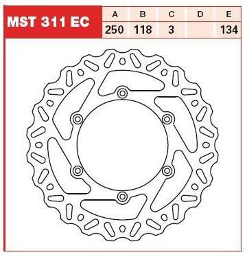 Dane techniczne: - Średnica zewn.: 250 mm - Średnica wewn.: 118 mm - Średnica osadzenia śrub mocujących: 134 mm - Liczba śrub mocujących: 6 - Średnica otworu śruby: 6.5 mm - Grubość: 3 mm - Wersja / Typ: Stała - Producent: TRW Ten produkt pasuje do modeli: Suzuki - DR 125 SM / 11 PS, 8,1 kW / 2008r - 2013r - DR-Z 400 / 49 PS, 36 kW / 2002r - 2004r - DR-Z 400 / 49/14 PS, 36/10 kW / 2000r - 2001r - DR-Z 400 E / 33 PS, 24 kW / 2000r - 2001r - DR-Z 400 E / 49 PS, 36 kW / 2002r - 2005r - DR-Z 400 E / 49/33 PS, 36/24 kW / 2006r - 2007r - DR-Z 400 S / 39 PS, 29 kW / 2000r - 2008r - RM 125 / 36 PS, 26 kW / 1989r - 1990r - RM 125 / 38,5 PS, 28,3 kW / 1991r - 1995r - RM 125 / 40 PS, 29 kW / 1996r - 2003r - RM 125 / 41 PS, 30,2 kW / 2004r - 2012r - RM 250 / 51 PS, 38 kW / 1989r - 1990r - RM 250 / 53 PS, 39 kW / 1991r - 1997r - RM 250 / 54 PS, 40 kW / 1998r - 2003r - RM 250 / 55 PS, 40,5 kW / 2004r - 2012r - RMX 250 / 40 PS, 29,5 kW / 1991r - 1992r - RMX 250 / 52 PS, 38 kW / 1993r - 1998r Yamaha - WR 250 F / 2013r - 2017r - WR 250 F / 38,7/28,6 PS, 28,5/21 kW / 2001r - 2012r - WR 400 F / 37 PS, 27 kW / 1999r - 2001r - WR 400 F / 48/36,7 PS, 35,3/27 kW / 2002r - WR 426 F / 50,4/37,4 PS, 37,1/27,5 kW / 2001r - 2002r - WR 450 F / 2012r - 2015r - WR 450 F / 52,5/40,8 PS, 38,6/30 kW / 2003r - 2006r - WR 450 F / 53 PS, 39 kW / 2007r - 2011r - XV 1900 A Midnight Star / 90 PS, 66 kW / 2011r - 2016r - XV 1900 Midnight Star / 90 PS, 66 kW / 2006r - 2010r - YZ 125 / 2013r - 2017r - YZ 125 / 39 PS, 29 kW / 2001r - 2012r - YZ 250 2T / 2012r - 2017r - YZ 250 2T / 53 PS, 39 kW / 2000r - 2011r - YZ 250 F 4T / 2013r - 2015r - YZ 250 F 4T / 41,5 PS, 30,5 kW / 2001r - 2002r - YZ 250 F 4T / 42 PS, 31 kW / 2003r - 2012r - YZ 426 F / 58 PS, 43 kW / 2001r - 2002r - YZ 450 F / 2011r - 2015r - YZ 450 F / 60 PS, 44 kW / 2003r - 2010r