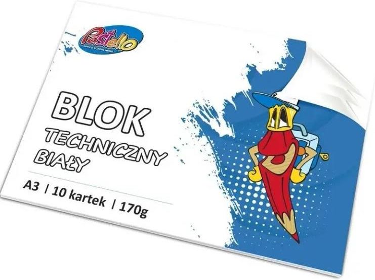 Blok techniczny BIAŁY, format A3, 10 kartek, gramatura 170 gram, wysokiej jakości papier. Idealny do precyzyjnego rysunku technicznego oraz tworzenia figur przestrzennych.