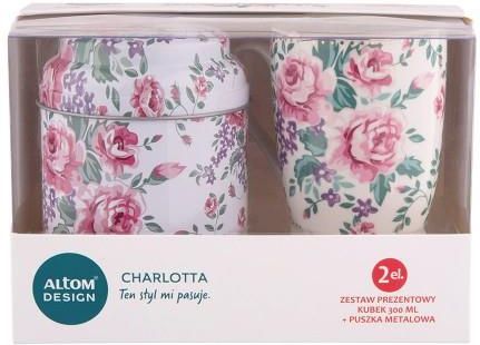 Zestaw prezentowy - kubek porcelanowy i puszka na herbatę Altom Design Charlotta posiada elegancki i ponadczasowy wygląd. 01010052361 Opis Kolor: Wielokolorowy Materiał: Porcelana Marka: Altom Design Przeznaczenie: Do kawy, Do herbaty W skład zestawu wchodzi: 1 x kubek: Pojemność: 300 ml, Wysokość: …