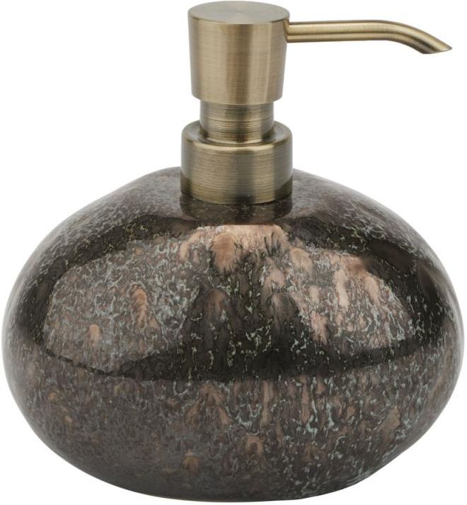 Dozownik na mydło Aquanova Ugo. Szlachetne połączenie brązu i złota w wyjątkowej formie. Bestseller z szybką wysyłką ♥ Dozownik na mydło Aquanova Ugo to elegancki akcent, który łączy ręczne wykonanie z wysokiej jakości ceramiką, stalą szlachetną i elementami ze stopu cynku. Odcień vintage bronze przyciąga uwagę głębią koloru i subtelnym, złocistym połyskiem, nadając łazience ciepły, wyrafinowany charakter. Każdy dozownik z kolekcji Aquanova Ugo jest unikalny – dzięki ręcznej produkcji zyskuje indywidualną fakturę i niepowtarzalny wygląd. To doskonały wybór dla miłośników nowoczesnego designu z nutą luksusu. W połączeniu z kubkiem, mydelniczką i szczotką WC z tej samej serii stworzy harmonijną, spójną aranżację łazienki. Odkryj Aquanova Ugo – kolekcję, która łączy sztukę rzemiosła z ponadczasową elegancją. Dane techniczne dozownika Aquanova Ugo Marka: AquanovaKolekcja: UgoMateriał: ceramika, stop cynku, stal szlachetnaKolor: brązowy (vintage bronze)Średnica: 13 cmSzerokość: 10 cmWysokość: 14 cmPojemność: 500 ml