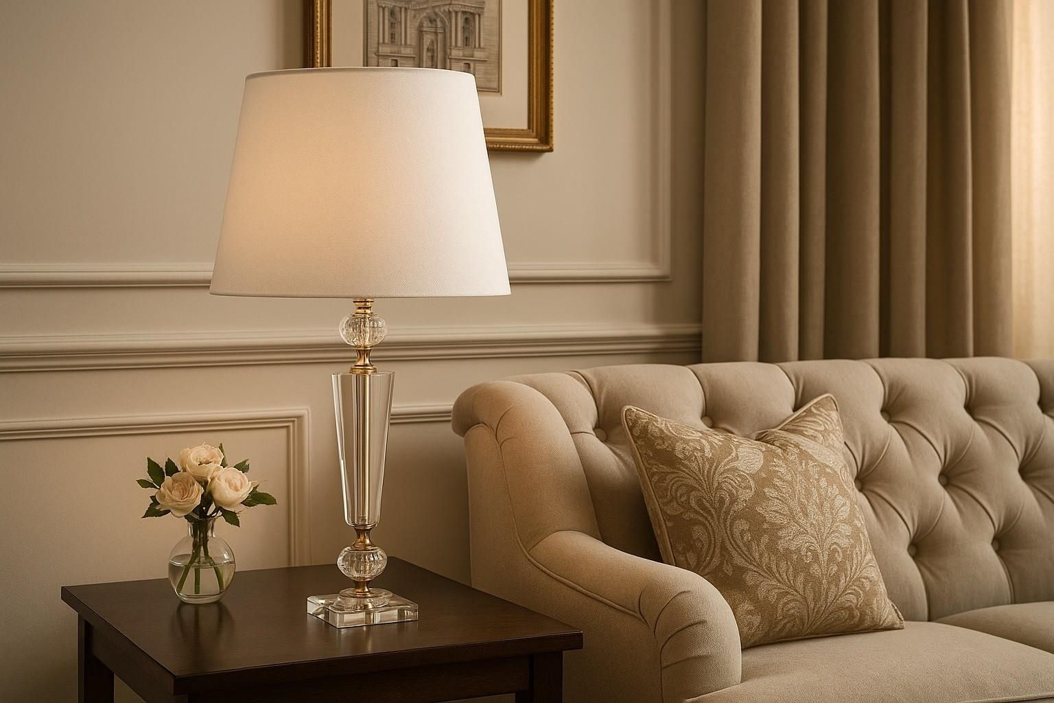 Elegancka lampa stołowa, która zachwyca subtelnym połączeniem metalu, szkła i płótna. Jej klasyczna forma oraz delikatna kolorystyka sprawiają, że doskonale odnajdzie się zarówno w nowoczesnych, jak i tradycyjnych wnętrzach. Lampa posiada stożkowy abażur o średnicy 30 cm i wysokości 26 cm, wykonany z wysokiej jakości płótna w odcieniu ecru. Tkanina pięknie rozprasza światło, tworząc we wnętrzu przytulny klimat. Stabilna podstawa ze szkła i metalu dodaje całości lekkości oraz eleganckiego blasku. Całkowita wysokość lampy to 63 cm, dzięki czemu świetnie sprawdzi się na stoliku nocnym, komodzie lub konsoli w salonie. Długość kabla wynosi 160 cm, co zapewnia wygodne użytkowanie i łatwe dopasowanie do przestrzeni. Cechy produktu: • Średnica abażura: 30 cm • Wysokość abażura: 26 cm • Wysokość całkowita: 63 cm • Materiał: metal, szkło, płótno • Długość kabla: 160 cm • Kolor: biały / złoty / transparentny • Gwint: E27, max 60 W (żarówka nie w zestawie) Ta stylowa lampa stołowa wprowadzi do wnętrza ciepło, elegancję i subtelny blask, stanowiąc doskonałe uzupełnienie aranżacji w stylu klasycznym, glamour lub nowoczesnym. Zdjęcie aranżacyjne ma charakter poglądowy. Prezentowana aranżacja może zawierać elementy dekoracyjne niewchodzące w skład zestawu. Szczegóły dotyczące zawartości znajdują się w opisie produktu.