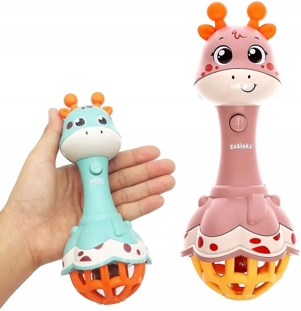 GRZECHOTKA SENSORYCZNA GRYZAK ŚWIATŁO DŹWIĘK 17 CM Sensoryczna grzechotka o zabawnym kształcie ŻYRAFKI to wspaniała zabaweczka dla malucha! Guzik uruchamia delikatne światełko oraz melodię. Grzechotka posiada w środku brzęczące elementy. Miękka końcówka służy jako gryzak - niezastąpiony podczas ząbkowania. Stymuluje zmysł wzroku- dziecko uczy się rozróżniać barwy, kształty oraz rozwija wyobraźnię i motorykę rączki Wykonanie bezpiecznych, nietoksycznych materiałów, z dbałością o szczegóły Wymiary: 1 szt - 17 cm 4 pastelowe kolory - niebieski / beżowy / żółty / różowy. Prosimy o wybór koloru w uwagach do sprzedającego. Bez informacji o wyborze, towar wysyłamy losowo. Wspaniały pomysł na rozwijający i ciekawy prezent dla malucha ! Zabawka przeznaczona dla dzieci powyżej 3-go roku życia. Bezpieczeństwo użytkowania potwierdza Europejski Certyfikat bezpieczeństwa CE oraz zgodność z normą EN71. Przyjazne kolory przyciągają wzrok dziecka Wykonana jest z najwyższej jakości materiałów, bezpiecznych dla malucha Światełko i dźwięk Kod EAN: 5904326403567 Kod towaru: G3567
