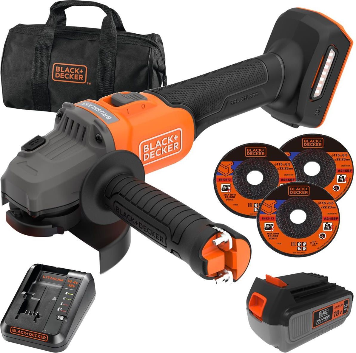 BLACK DECKER BCG6L8D2S SZLIFIERKA KĄTOWA BEZSZCZOTKOWA AKUMULATOROWA 18V 115mm W zestawie: szlifierka kątowa BCG6L8D2S, 2x akumulator 2Ah BDL2018S, ładowarka, 3x tarcza do metalu 115mm, torba BD-BCG6L8D2S Opis szlifierki kątowej Black Decker Szlifierka kątowa akumulatorowa 115 mm 18V BLACK DECKER …