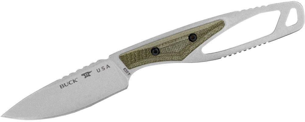 Il coltello da caccia 635 PakLite Cape è progettato per scuoiare la piccola selvaggina. Il design leggero, a tutto codolo e scheletrico pesa solo 1,59 once. Ciò conferisce al coltello una grande forza mentre mantiene il bordo. Il design leggero, completo e scheletrico conferisce al coltello una resistenza eccezionale e la capacità di lavorare la selvaggina senza la necessità di riaffilarlo durante l'uso. La lama drop point conferisce a questo coltello una grande versatilità, permettendone l'utilizzo per diversi compiti oltre alla caccia. Il manico minimalista offre una presa sicura e migliora l'ergonomia. E' incluso un fodero leggero in polipropilene che consente diversi metodi di trasporto.   SPECIFICHE ACCIAIO LAMA S35VN Stainless Steel MATERIALE MANICO Micarta verde oliva rimovibile LUNGHEZZA LAMA cm 7 SPESSORE LAMA mm 2,79 LUNGHEZZA TOTALE cm 18,1 PESO gr 45 FODERO Polipropilene nero DESIGNER Buck Knives ORIGINE Made in USA