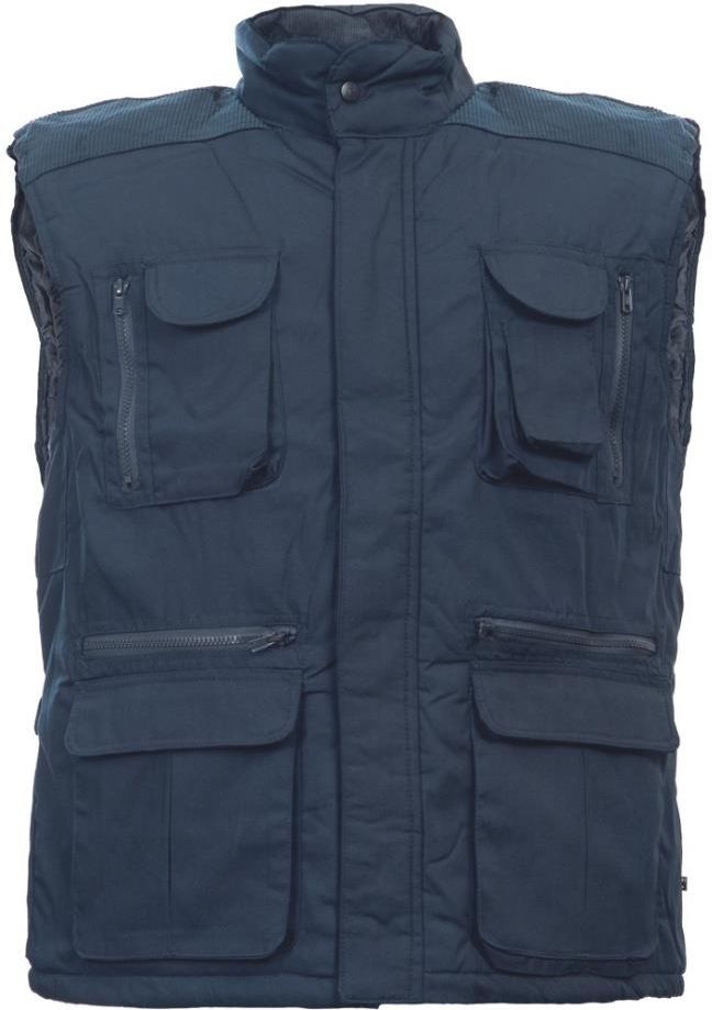 Materiał: materiał podszewki: 80 % poliester, 20 % bawełna, 160 g/m² wewnętrzna podszewka odzieży: 100 % poliester wewnętrzna izolacja odzieży: 100 % poliester, 200 g/m² opis: • ocieplana kamizelka • wysoki kołnierz dobrze chroni szyję • możliwość regulacji obwodu kamizelki za pomocą zatrzasków • u dołu elastyczny sznurek • dostosowana do haftu maszynowego normy: en iso 13688 cechy: cechy: duże rozmiary