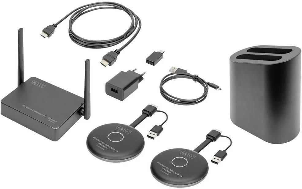 Przedłużacz/Extender HDMI system pracy zespołowej, bezprzewodowy 50m 4K 60Hz 5GHz (zestaw) Bezprzewodowy system do pracy zespołowej i prezentacji umożliwia prowadzenie prezentacji za pomocą notebooka, tabletu lub smartfona Bezprzewodowy system współpracy (Wireless Collaboration System) marki …