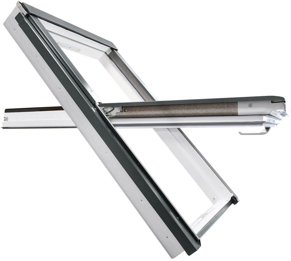 Okno dachowe FAKRO PTP-X P50 ABMX GreenView 66x98 3-szybowe Uwaga: Do każdego okna dachowego należy dokupić kołnierz uszczelniający z serii GreenView W razie problemu z doborem prosimy o kontakt z obsługą sklepu! Okna tworzywowe PTP-X P50 ABMX GREENVIEW to nowa generacja okien otwieranych obrotowo o współczynniku Uw = 1,0 W/m2K i akustyce Rw = 41 dB. Okna są wykonane z wielokomorowych profili PVC w kolorze białym wzmocnionych rdzeniami stalowymi. Tworzywo nie pochłania wilgoci, okno jest trwałe, odporne na korozję i nie wymaga malowania podczas użytkowania. W oknie zewnętrzna szyba hartowana z dożywotnią gwarancją na rozbicie przez grad. Szyba wewnętrzna bezpieczna–laminowana. Podwyższona odporność na włamanie dzięki opatentowanemu systemowi topSafe. Idealnie nadają się do zastosowania we wszystkich pomieszczeniach na poddaszu szczególnie takich jak kuchnie i łazienki. Ponadto okna posiadają nowoczesny kształt oblachowania i nowoczesny kolor - antracyt RAL 7016 w standardzie. Okno PTP-X P50 ABMX to okno bez nawiewnika. Produkt ekologiczny - okna PVC wykonane są w dużej części z materiału przetworzonego i praktycznie w całości mogą zostać poddane recyklingowi. ZAKRES MONTAŻU 15-90°.