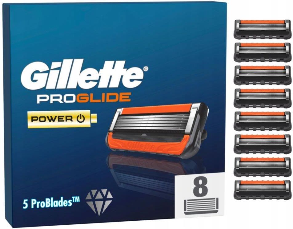 Gillette ProGlide Wkłady do maszynki do golenia dla mężczyzn, 8 sztuk Ostrza wymienne do maszynki do golenia dla mężczyzn Gillette ProGlide łączą kultową precyzję golenia Gillette z komfortem i stylowym wyglądem. Te ostrza wymienne do maszynek do golenia są wyposażone w większy pasek nawilżający (w porównaniu z modelem Fusion5), aby zapewnić komfort i poślizg maszynki. Dodatkowy system stabilizacji ostrzy daje większą kontrolę i zapewnia lepszą osłonę, by lepiej chronić skórę. Dodatkowy system stabilizacji ostrzy daje większą kontrolę i zapewnia lepszą osłonę, by lepiej chronić skórę. Precyzyjny trymer znajdujący się z tyłu maszynki doskonale nadaje się do stylizowania zarostu, zwłaszcza w trudno dostępnych miejscach. Niezawodne ostrza zmniejszające tarcie zapewniają gładkie golenie i pasują do wszystkich rączek do maszynki do golenia Gillette z 5 ostrzami (z wyłączeniem GilletteLabs). Ostrza wymienne ProGlide wystarczą nawet na miesiąc golenia. 1 KOŃCÓWKA WYMIENNA = 1 MIESIĄC GOLENIA Każde ostrze do maszynki do golenia Gillette ProGlide zapewnia golenie nawet przez miesiąc PRECYZYJNY TRYMER UMOŻLIWIA DOKŁADNE ZAZNACZENIE KONTURÓW Precyzyjny trymer. Uzyskaj eleganckie linie dzięki precyzyjnemu trymerowi, który znajduje się z tyłu maszynki PASUJE DO WSZYSTKICH RĄCZEK PROGLIDE, PROSHIELD ORAZ FUSION5 ZAPEWNIA REWELACYJNĄ GŁADKOŚĆ Większy pasek Lubrastrip* zapewniający większy komfort i technologia FlexBall, dzięki której maszynka dopasowuje się do kształtów twarzy Doskonale sprawdza się w połączeniu z żelem do golenia Gillette Pro, zapewniając jeszcze dokładniejsze golenie** * w porównaniu z poprzednią maszynką ProGlide **w porównaniu z korzystaniem bez stosowania żelu do golenia 5 NIEZWYKLE SKUTECZNYCH OSTRZY PROBLADES 5 niezawodnych ostrzy ProBlades zapewnia dokładne i bardziej komfortowe golenie* * w porównaniu z Fusion5 Jest to oryginalny produkt Gillette, wysyłany w naszym specjalnym opakowaniu przeznaczonym do sprzedaży internetowej.