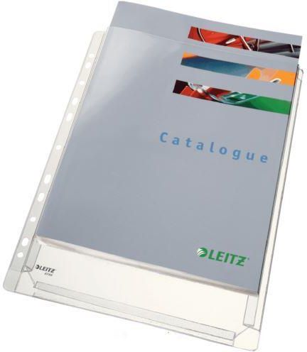 Koszulki A4 na kataolog Leitz Niezwykle wytrzymała i mocna, lekko tłoczona folia o grubości 0,17 mm Zapewnione długotrwałe użytkowanie Kolor: przeźroczysty Materiał: miękka folia PVC, groszkowa Wymiar: 236 x 1 x 310 Otwierany: od góry Perforacja: uniwersalna Grubość folii: 170 mic
