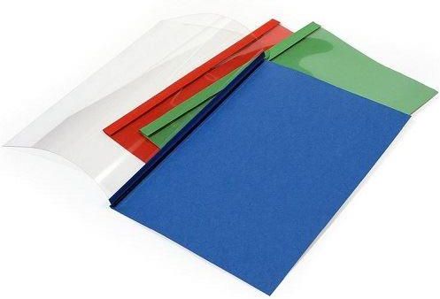 Termookładki Prestige kolorowe Gotowe okładki do termobindowania. Specjalny pasek kleju umieszczony w grzbiecie. Przód: okładki z krystalicznie przejrzystej folii 150 mic Tył: skóropodobny karton Delta 225 g/m2 Szerokość grzbietu okładki do 9 mm. Format A4 Kolory: zielony, niebieski, czerwony, …