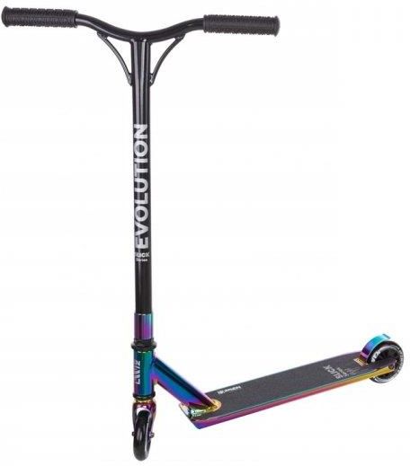 Hulajnoga RAVEN Evolution Slick Series Neo Chrome 100mm Parametry hulajnogi Marka: RAVEN Model: Evolution Slick Series Neo Chrome Łożyska: Abec9 608RS Chrome Rozmiar kółek: 100mm Kierownica: Y-Shape - Stage 1 - niezwykle wytrzymały mechanicznie kształt z serii Evolution Series Premium High Carbon …