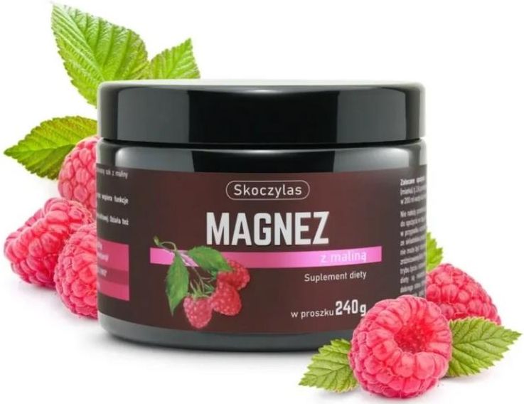Skoczylas Magnez z maliną 240 g – proszek MAGNEZ W FORMIE CYTRYNIANIU - ŁATWO PRZYSWAJALNA NATURALNY SMAK MALINY WSPIERA UKŁAD NERWOWY I PRACĘ MIĘŚNI POMAGA W REDUKCJI UCZUCIA ZMĘCZENIA I ZNUŻENIA UTRZYMUJE PRAWIDŁOWĄ RÓWNOWAGĘ ELEKTROLITOWĄ KORZYSTNIE WPŁYWA NA ZDROWIE SERCA BEZ CUKRU, BEZ KONSERWANTÓW, BEZ BARWNIKÓW O produkcie Magnez z maliną od Skoczylas to suplement w formie proszku łączący cytrynian magnezu z prawdziwym sokiem malinowym — co sprawia, że suplementacja staje się przyjemniejsza. Produkt przeznaczony do wspierania układu nerwowego, mięśni, równowagi elektrolitowej oraz redukcji zmęczenia. Magnez pomaga w prawidłowym funkcjonowaniu mięśni, pomaga w utrzymaniu zdrowych zębów, pomaga w utrzymaniu równowagi elektrolitowej, przyczynia się do utrzymania prawidłowego metabolizmu energetycznego, pomaga w prawidłowym funkcjonowaniu układu nerwowego, odgrywa rolę w procesie podziału komórek, pomaga w prawidłowej syntezie białka, pomaga w utrzymaniu prawidłowych funkcji psychologicznych, pomaga w utrzymaniu zdrowych kości. Zalety bez cukru, starannie wyselekcjonowane źródło surowca, bez substancji konserwujących, bez przeciwzbrylaczy, bez sztucznych barwników, czarne opakowanie chroni zawartość przed niepożądanym działaniem promieni UV, prosto od producenta z Polski. Składniki Sole magnezowe kwasu cytrynowego (cytrynian magnezu), sproszkowany sok z maliny właściwej (Rubus idaeus L.), naturalny aromat. Dzienna porcja – 2,6 g (1 miarka) zawiera: Magnez - 362,5 mg (96 %) Sproszkowany sok malinowy -74 mg RWS (%) - Referencyjna Wartość Spożycia Sposób użycia Zalecana porcja dzienna: 2,6 g (1 miarka). Rozpuścić w ~200 ml wody lub napoju i odczekać około 20 minut bez mieszania, aż proszek się rozpuści. Nie przekraczać zalecanej porcji. Opakowanie: 240 g (ok. 92 dni suplementacji). Dodatkowe informacje Suplement diety nie może zastępować zróżnicowanej diety. Produkt przeznaczony dla osób dorosłych. Kobiety w ciąży i karmiące piersią oraz osoby przyjmujące leki powinny skonsultować stosowanie z lekarzem. Przechowywać w suchym, chłodnym miejscu, w sposób niedostępny dla dzieci. Chronić przed światłem i wilgocią. O producencie Seria suplementów diety Skoczylas, opracowana przez lek. Marka Skoczylasa, specjalistę w naturalnych metodach leczenia, składa się z wysokojakościowych ekstraktów i wyciągów roślinnych. Produkty te są wolne od chemicznych dodatków, takich jak stearynian magnezu, konserwanty czy sztuczne barwniki, co gwarantuje ich najwyższą jakość. Dzięki ciemnym opakowaniom, które chronią przed promieniowaniem UV, suplementy zachowują swoją trwałość i skuteczność. Wszystkie informacje zawarte w ofercie mają charakter wyłącznie informacyjny i nie zastępują konsultacji z lekarzem, ani nie powinny być wykorzystywane do samodzielnego diagnozowania czy leczenia. Prezentowane produkty nie są przeznaczone do diagnozowania, leczenia ani zapobiegania jakimkolwiek chorobom. Suplementy diety nie powinny być stosowane jako zamiennik zróżnicowanej diety.
