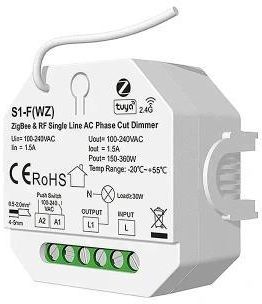 To urządzenie odbiorcze przeznaczone do standardowej puszki fi60, służące do uzyskania kontroli nad żarówkami LED przeznaczonymi na napięcie 230VAC (np. ściemniane żarówki LED). Odbiornik S1-F umożliwia dostęp do jednego wyjścia, do którego możemy podłączyć maksymalnie obciążalność rzędu 200W. Podłączone oświetlenie może być dowolnie ściemniane oraz rozjaśniane za pomocą elementu triakowego znajdującego się w urządzeniu. Istotną kwestią względem modelu S1-B jest podłączenie wykorzystujące tylko linie fazy. Podstawową łącznością sterownika S1-F jest protokoł Zigbee, który pozwala na dostęp do urządzenia poprzez aplikacje Tuya Smart. Alternatywną formą komunikacji odbiornika S1-F jest bezprzewodowa droga radiowa, którą łączy się z pilotem do led bądź panelem naściennym led. Odbiornik led został wzbogacony o dodatkowe niezależne wejście na przycisk dzwonkowy umożliwiające ściemnianie/rozjaśnianie przy użyciu przycisku zwiernego. Odbiornik S1-F cechuje się sterowaniem na zasadzie odcinania fazy. Ściemniacz do żarówek LED posiada również funkcje blokady natężenia światła, która po ustaleniu danej jasności nie przekracza tej wartości. Posiada specjalny adapter, który pozwala na zamontowanie go również na szynie TH-35. Wysoka jakość wykonania natomiast zapewnia 60-cio miesięczny okres gwarancyjny. Zastosowanie do instalacji: 230VAC ściemnialne żarówki LED przeznaczone na napięcie 230VAC ZigBee wspieranej przez ten system sterowania Cechy odbiornika S1-F(WZ) Dedykowany dla ściemnialnych żarówek led 230VAC Jeden kanał do wykorzystania Zasilany bezpośrednio z sieci 230VAC Do podłączenia wykorzystuje tylko linie fazy Dopuszczalna maksymalna moc 200W Wspierany przez system sterowania ZigBee Współpraca z systemami głosowymi Alexa Home, Google Assistant, Tmall Genie, Xiaodu Alternatywna komnikacja wykorzystująca drogę radiową 2,4Ghz Pełna paleta współpracujących urządzeń nadawczych (piloty LED, panele naścienne LED) Zasięg komunikacji do 30 metrów (automatyczna retransmisja sygnału radiowego) Możliwość przypisania dziesięciu urządzeń nadawczych Praca na zasadzie odcięcia pojedynczej fazy Płynna praca nie męcząca naszego wzroku (256 poziomów ściemniania w zakresie 0-100%) Ustalenie płynności załączania/wyłączania oświetlenia (0,5s /3s) Dodatkowe wejście dla przycisku zwiernego umożliwiające pełne sterowanie równoznaczne z panelem LED Możliwość blokady minimalnego poziomu jasności dla odbiornika Obudowa przystosowana na montaż do standardowej puszki fi60 Adapter pozwalający na zamotowanie urządzenia na szynie DIN Wysoka jakość zastosowanych komponentów 5 letnia gwarancja Poznaj serie produktu - odbiorniki LED triakowe Sterowniki LED AC Triac, to seria produktów zawierająca urządzenia przeznaczone do kontroli oświetlenia LED bazujących na ściemnianych żarówkach 230VAC. Element triakowy zawarty w obudowie urządzenia, umożliwia płynne ściemnianie tego typu oświetleniem w zakresie od 0-100%. Sterowanie jasnością odbywa się zazwyczaj z poziomu przewodowych bądź radiowych paneli naściennych lecz nic nie stoi na przeszkodzie by rozbudować instalacje o pilot radiowy czy bezprzewodowe sterowanie poprzez sieć WiFi. Ściemniacze triakowe do żarówek 230VAC wyparły dotychczasowe ściemniacze fazowe, które przeznaczone były do tradycyjnego oświetlenia halogenowego. Bezprzewodowa forma komunikacji – eliminacja kluczowych wad Urządzenia korzystające z bezprzewodowej komunikacji bazującej na drodze radiowej o określonej częstotliwości muszą w pełni precyzyjnie odbierać wysyłany sygnał i przekazywać go na wyjście urządzenia. Niestety sygnał ten często narażony jest na różnego typu zakłócenia wynikające z zewnętrznych czynników przez co zastosowanie większej ilości odbiorników LED było niegdyś kłopotliwe. Rozwiązaniem jakie oferują przedstawione produkty jest niewątpliwie automatyczna synchronizacja sygnału radiowego wraz z jego ponowną retransmisja. Pozwala to na jednoczesne załączanie wielu odbiorników bez efektu opóźnienia. Szczególnie jest to ważne w wielokolorowym oświetleniu LED, gdzie synchronizacja sygnału odgrywa kluczową role w ustalonych programach dynamicznych. Retransmisja natomiast zwiększa podstawowy zasięg komunikacji, co niewątpliwie zwiększa praktyczność instalacji LED. Odkryj unikalne funkcje sterowników LED