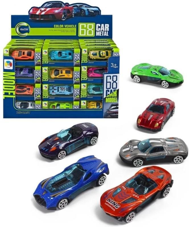 Metalowe Samochody Wyścigowe Die-Cast "COLOR VEHICLE 68" - Zestaw Kolekcjonerski Przedstawiamy zestaw Metalowych Samochodów Wyścigowych Die-Cast "COLOR VEHICLE 68" - idealną kolekcję dla małych i dużych entuzjastów motoryzacji! Te solidnie wykonane, dynamiczne modele to esencja prędkości i designu. ________________________________________ Kluczowe Cechy Produktu: Konstrukcja Die-Cast: Modele wykonane są z metalu (odlew ciśnieniowy, Die-Cast) z elementami plastikowymi. Ta technologia zapewnia wysoką trwałość, większą wagę i realistyczny wygląd, co jest cenione przez kolekcjonerów. Bogata Kolekcja Różnorodnych Modeli: Zestaw zawiera różnorodne modele samochodów sportowych, wyścigowych i futurystycznych supersamochodów. Różnią się kolorami i detalami (np. fioletowy kabriolet, czerwony bolid, niebieski futurystyczny model z otwartym silnikiem). Żywe Kolory i Detale: Każdy samochód jest pomalowany na wyrazisty, lśniący kolor i posiada ciekawe, nadrukowane detale, takie jak napisy "KING LUXURIOUS" czy "FAST". Display Box (Zestaw 12 sztuk): Samochody są pakowane w estetyczne, kolorowe pudełko zbiorcze, które świetnie nadaje się do ekspozycji w sklepie. Każdy model w zestawie jest inny, co zachęca do zbierania całej kolekcji. Wiek: Zabawka jest przeznaczona dla dzieci powyżej 3 roku życia (3+). Skala: Typowa skala dla małych, kolekcjonerskich modeli (brak dokładnego oznaczenia, zazwyczaj 1:64 lub podobna). Opis Doświadczenia: Samochody Die-Cast to klasyka, której nie może zabraknąć w żadnej dziecięcej kolekcji. Są idealne do urządzania szybkich wyścigów, nauki o modelach samochodów lub po prostu do zbierania i podziwiania. Solidna, metalowa konstrukcja gwarantuje, że wytrzymają nawet najbardziej dynamiczną zabawę. ________________________________________ Rozpocznij lub powiększ swoją kolekcję! Metalowe Samochody "COLOR VEHICLE 68" to jakość, design i adrenalina w miniaturze! Kategoria: Zabawki, Modele samochodów, Samochody Die-Cast, Kolekcje. Wiek: 3+ Materiał: Metal (Die-Cast), plastik. Ilość w zestawie: 12 sztuk (w display box). Funkcja: Wolnobieżne kółka. Wielkość pojedynczego opakowania: 7 cm EAN: 5901353686154
