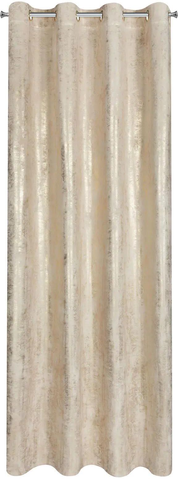 Zasłona zaciemniająca na przelotkach marki Eurofirany – styl i komfort w Twoim domu Zasłona zaciemniająca na przelotkach marki Eurofirany to idealne rozwiązanie dla osób, które pragną stworzyć w swoim wnętrzu komfortowe warunki snu i wypoczynku, jednocześnie dodając elegancji swoim oknom. Wykonana z wysokiej jakości materiału, zasłona zapewnia doskonałe zaciemnienie, blokując dostęp światła zewnętrznego i dbając o prywatność. Dzięki praktycznym przelotkom, zasłona jest łatwa w montażu i bezproblemowo przesuwa się po karniszu. Produkt marki Eurofirany dostępny jest w szerokiej gamie kolorów i rozmiarów, co pozwala na idealne dopasowanie do każdego wnętrza, zarówno nowoczesnego, jak i klasycznego. Materiał jest odporny na zagniecenia i łatwy w pielęgnacji, co sprawia, że zasłona wygląda stylowo przez długi czas. Cechy produktu: Wysokiej jakości tkanina zaciemniająca marki Eurofirany, Praktyczne przelotki umożliwiające szybki montaż i wygodne przesuwanie zasłon, Doskonała ochrona przed światłem słonecznym – idealna do sypialni, salonu czy biura, Ochrona prywatności i lepsza izolacja termiczna, Zasłona zaciemniająca na przelotkach marki Eurofirany to wybór, który łączy w sobie funkcjonalność i nowoczesny design, zapewniając stylową aranżację okien oraz pełen komfort w Twoim domu. Zasłona gotowa welwetowa z błyszczącym nadrukiem szerokość: 140 cm, długość: 250 cm, kolor: jasnobeżowy, Gramatura: 200 GSM, Skład: 100% poliester