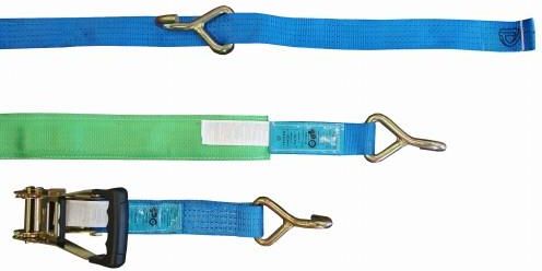 Pas Zabezpieczający 3,5m/50mm/4t Lohr 3-Punktowy Niebieski, 350 Dan, "Gumowa Rączka", Z Hakiem "J", Zielona Tuba Sławno